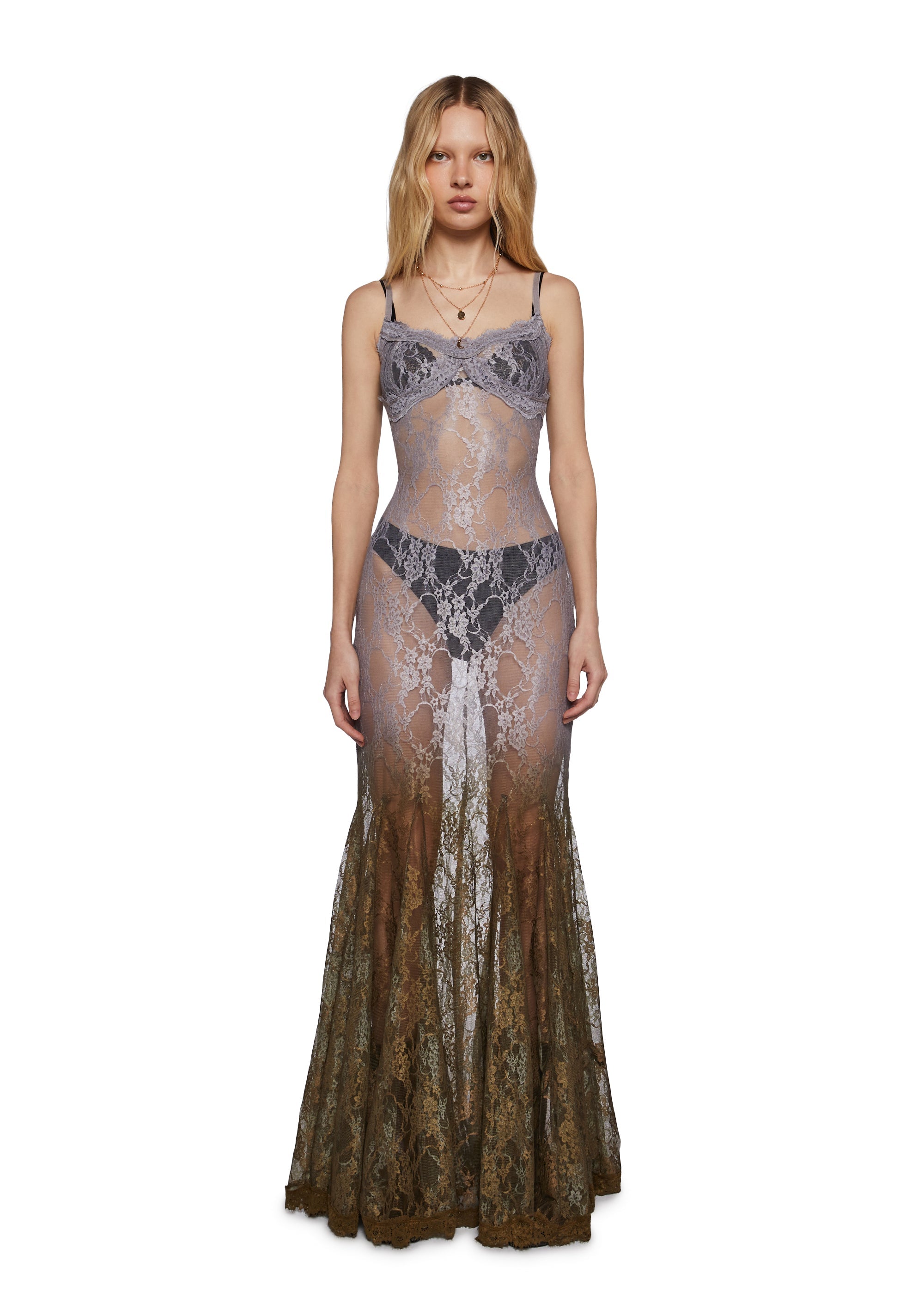 cuz you have nocturnal instincts. This maxi dress has a stretchy sheer lace construction, a dip dye color design, lace detailing, adjustable shoulder straps, and a back zipper closure.