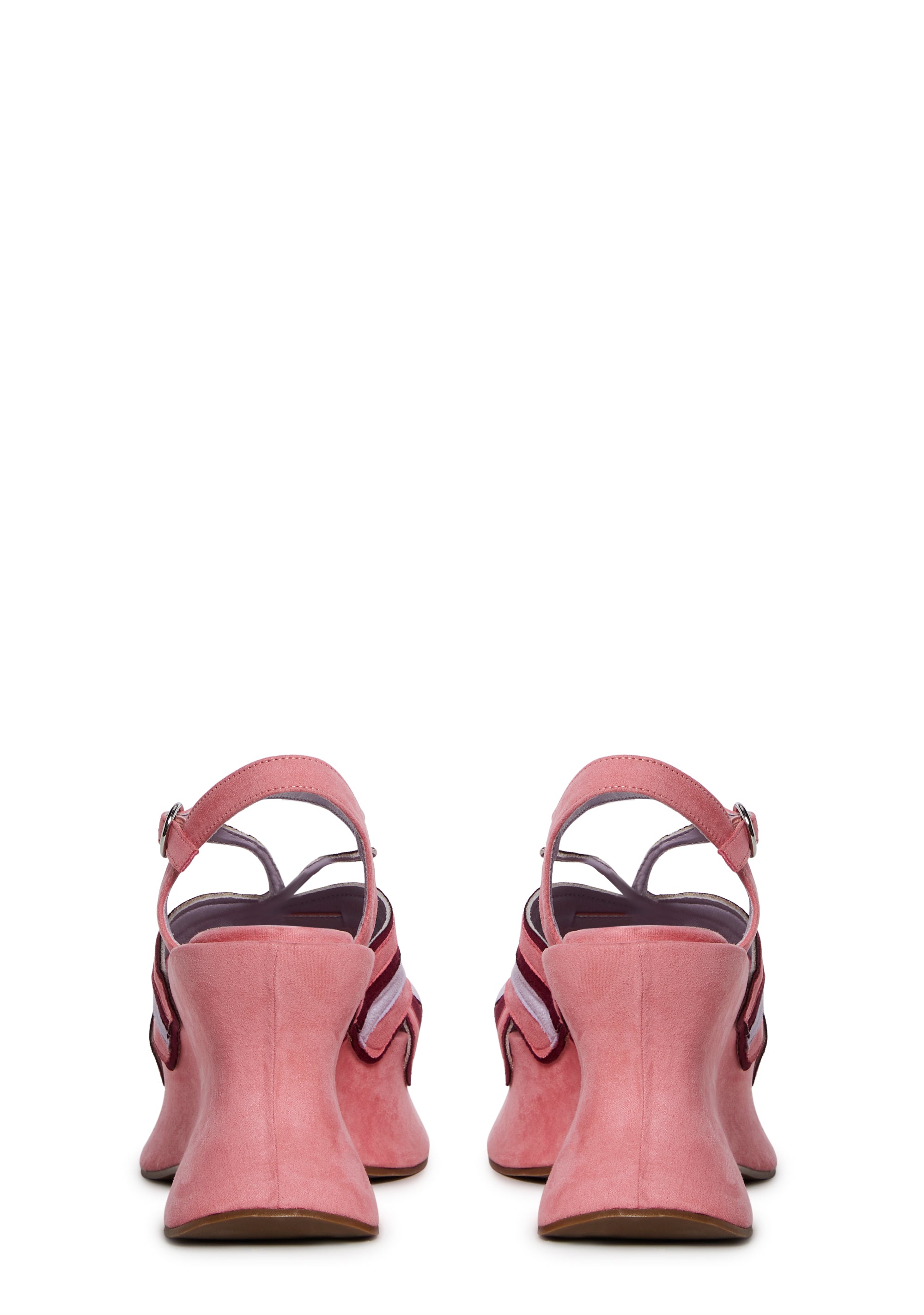 These wedges have a faux suede construction, a butterfly wrap design on the uppers, and adjustable buckle closures.
