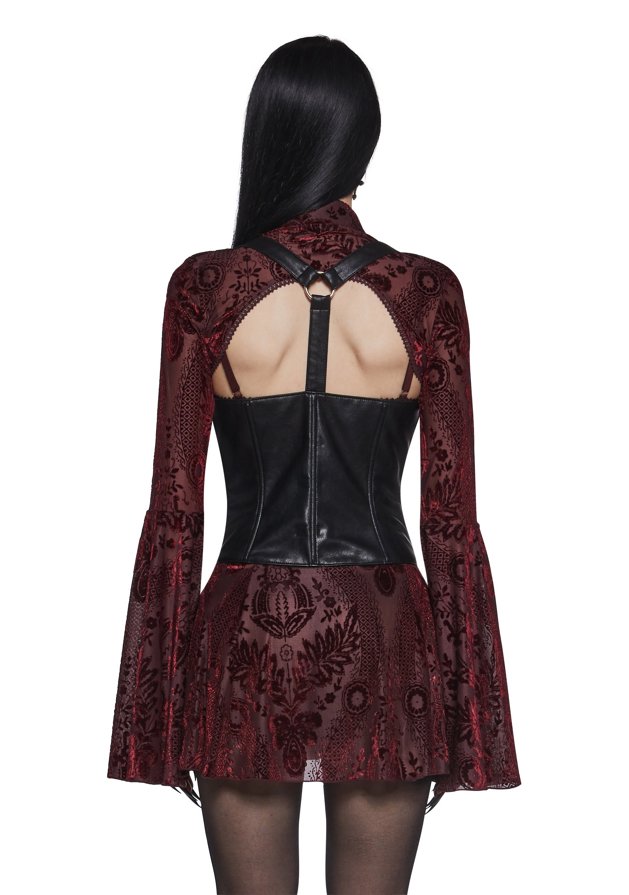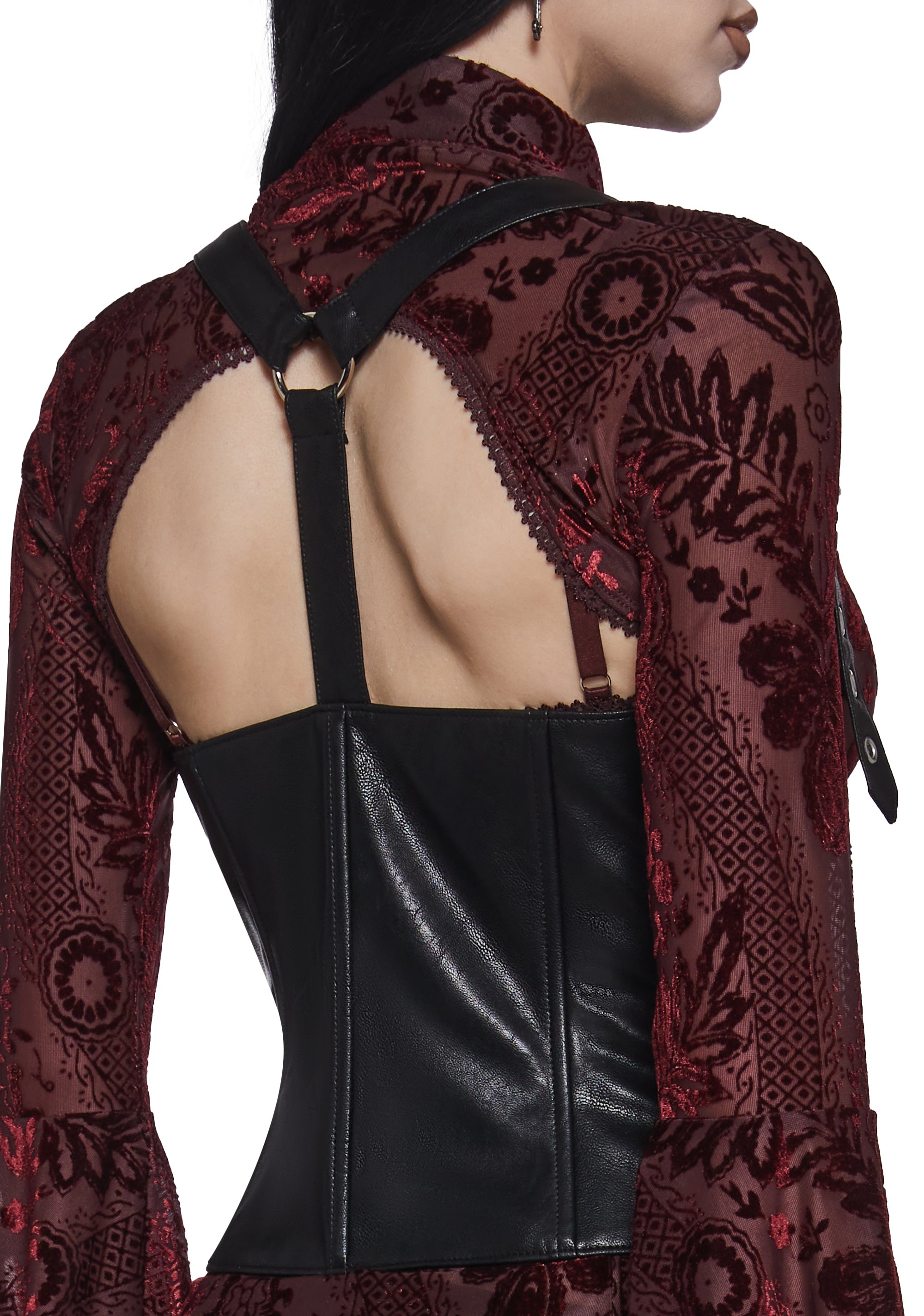Turn heads in this gothic-inspired underbust corset with adjustable shoulder straps, structured boning, O-ring hardware, and front hook closures.
