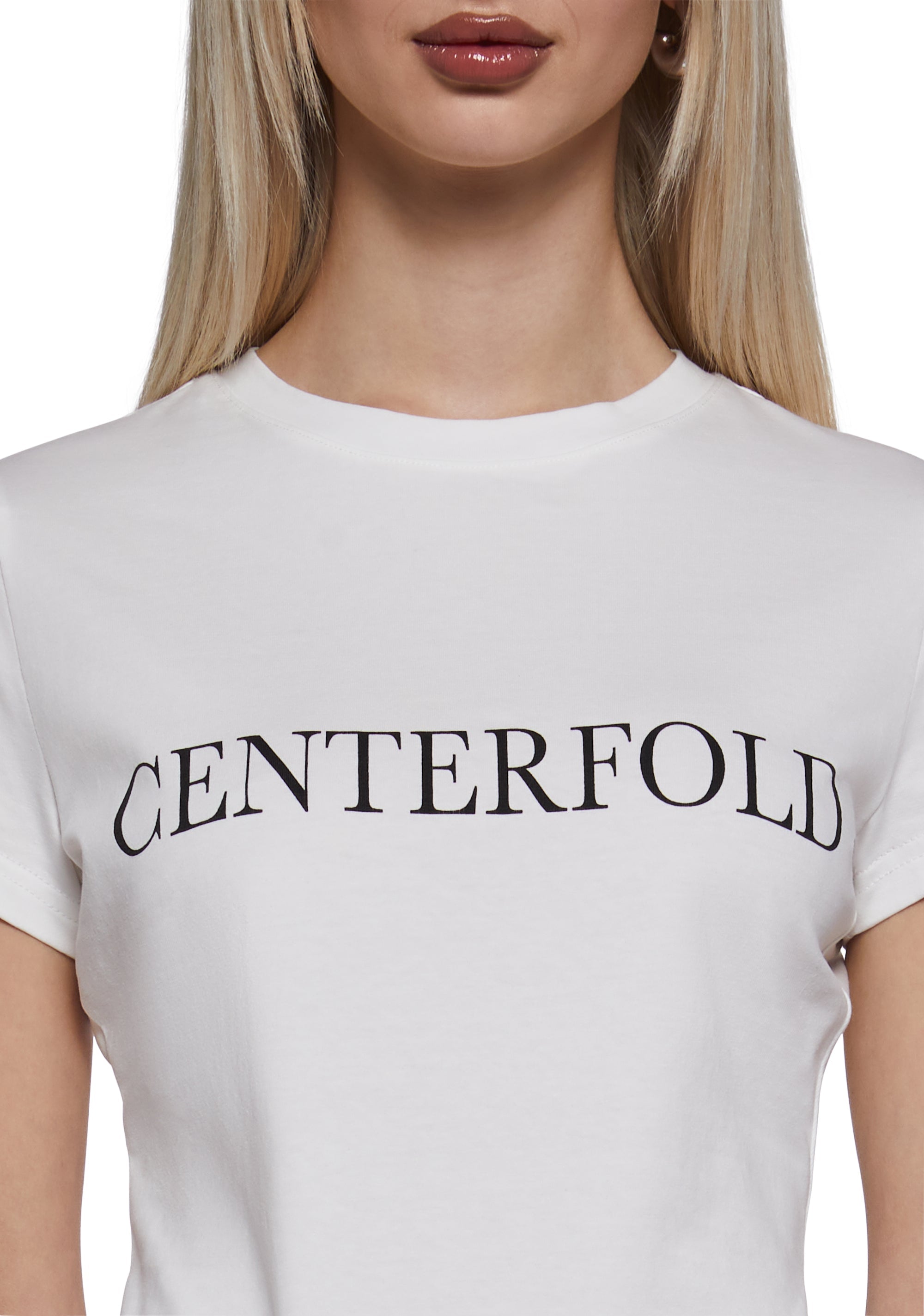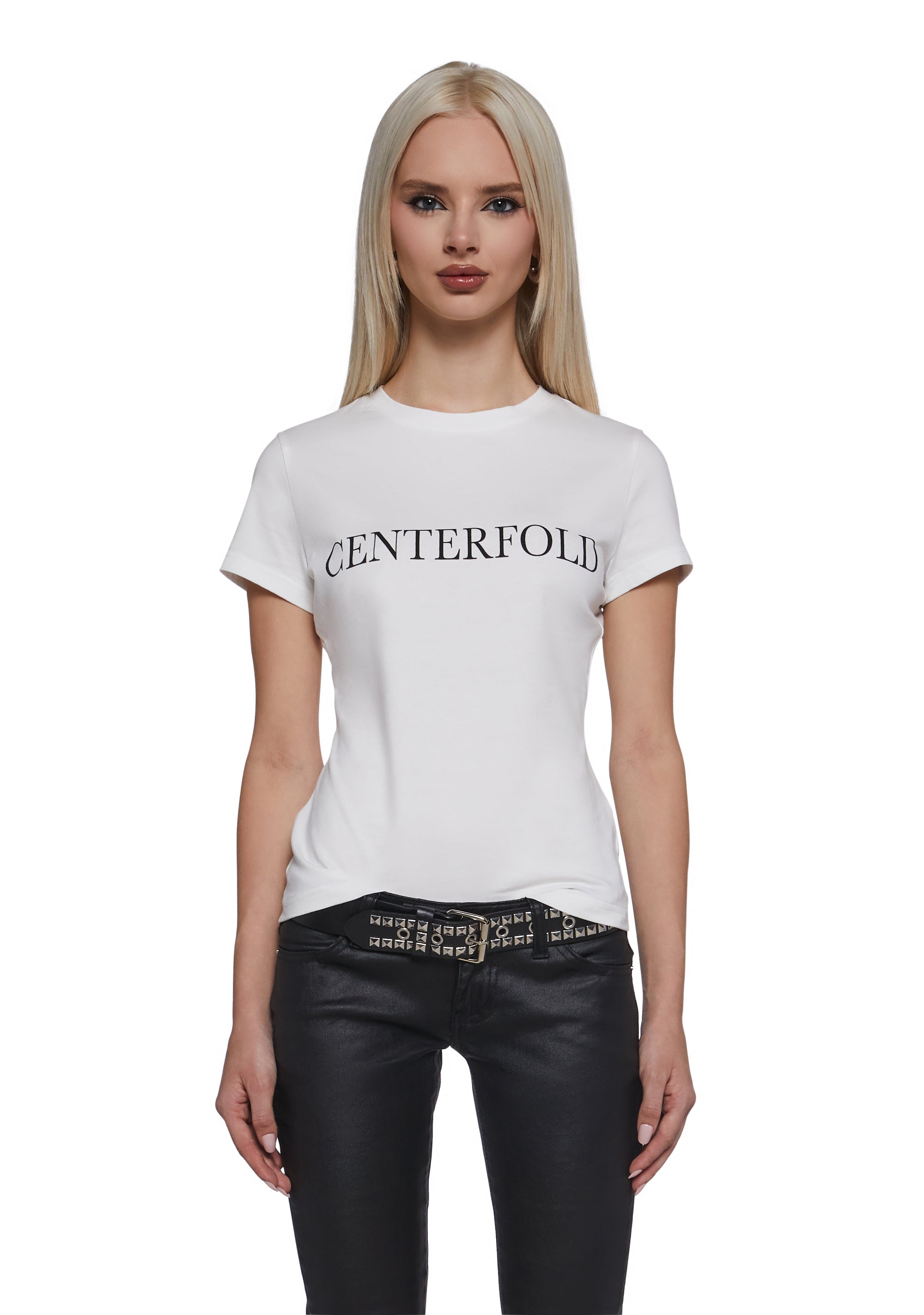Clean and classic, this fitted white tee features a timeless crew neckline and bold Centerfold logo detail. Crafted from soft, stretchy fabric, it’s an everyday essential that pairs effortlessly with any look.