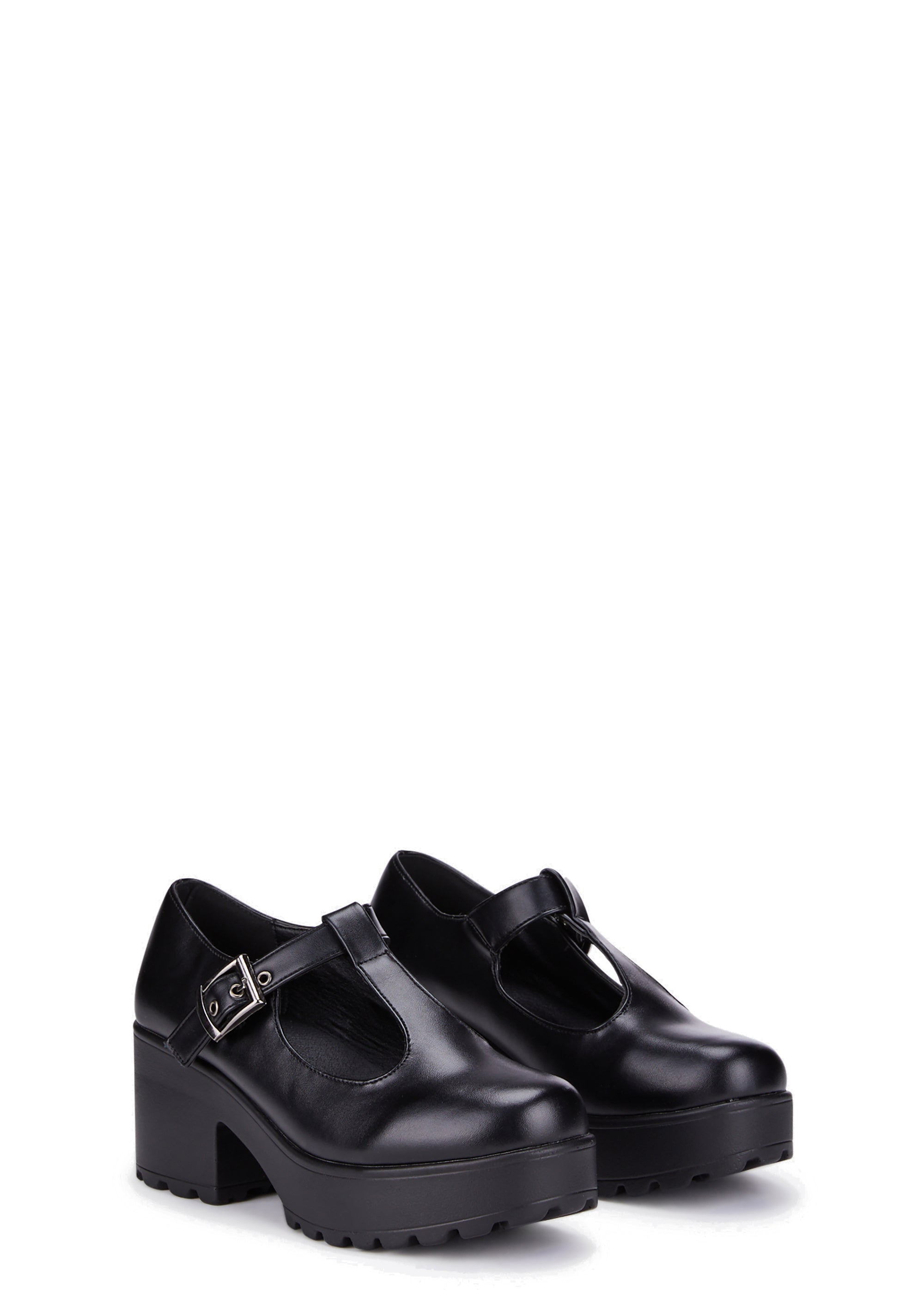 make 'em jealous, babe. Give 'em diva attitude in these oh so cute platform mary janes that have a vegan leather construction, chunky platform soles, and buckle closures.