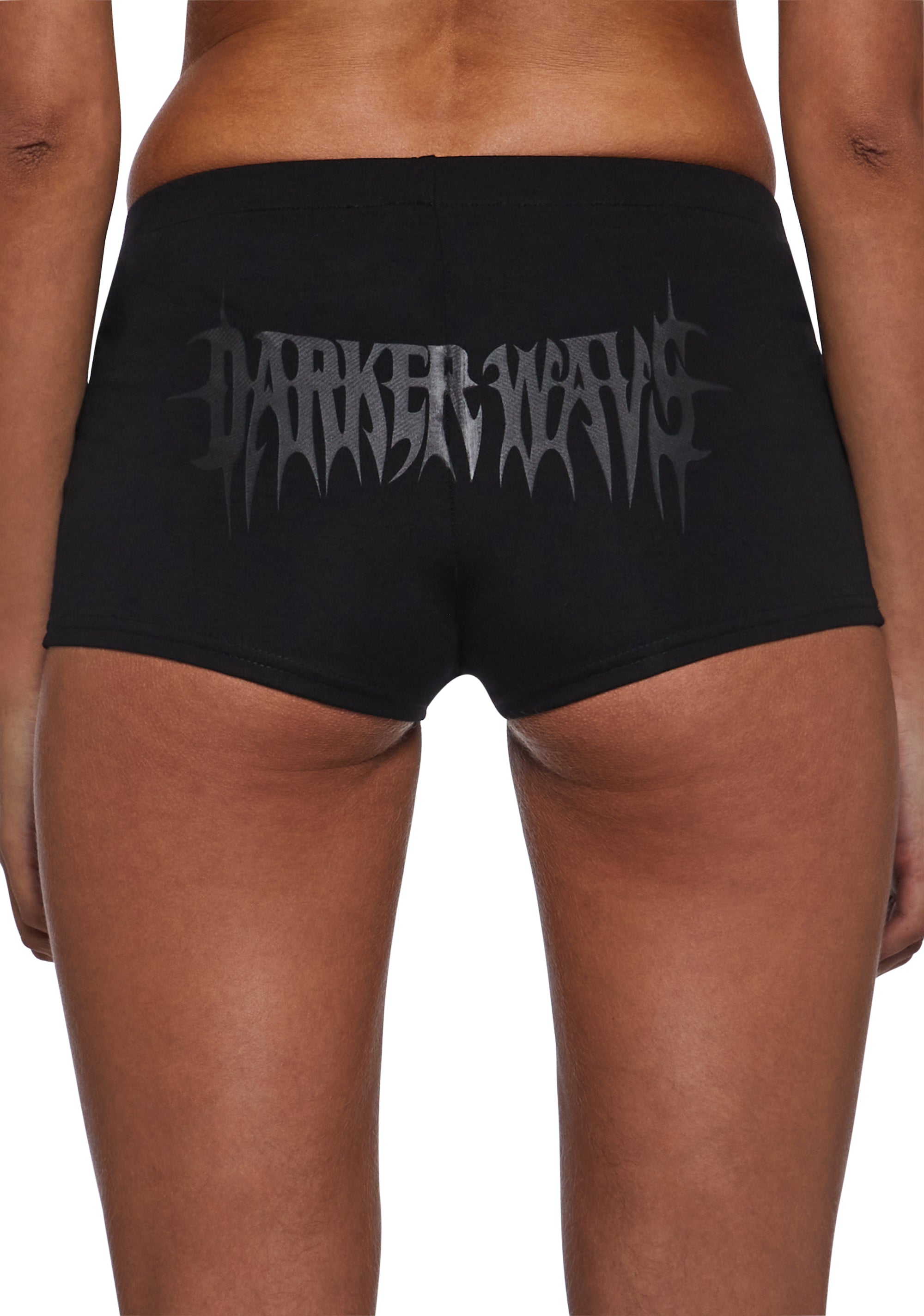 Elevate your edgy streetwear style with the Ego Micro Shorts With Hardware. Crafted from double-knit ponte fabric, these black micro shorts deliver structure, comfort, and attitude. Featuring dome stud detailing and D-ring hardware on the sides, they embody the bold, industrial aesthetic of Darker Wavs. Finished with the Darker Wavs graphic logo at the back, these high-rise shorts create a flattering, body-hugging silhouette perfect for layering or wearing solo.