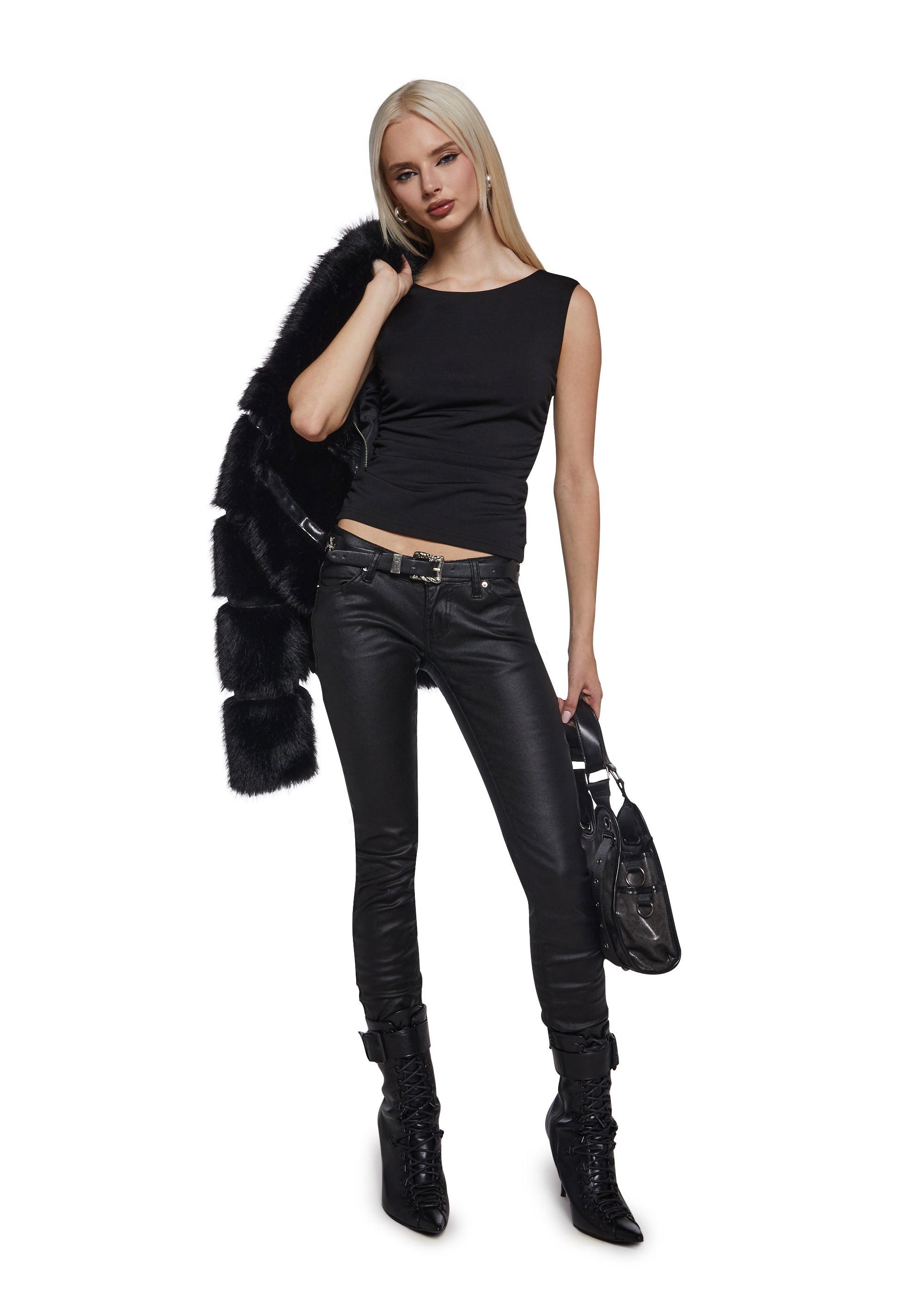 A sleek sleeveless top designed with subtle ruching for a flattering, body-hugging fit. Crafted from smooth stretch fabric, this versatile piece is perfect for effortless day-to-night styling.