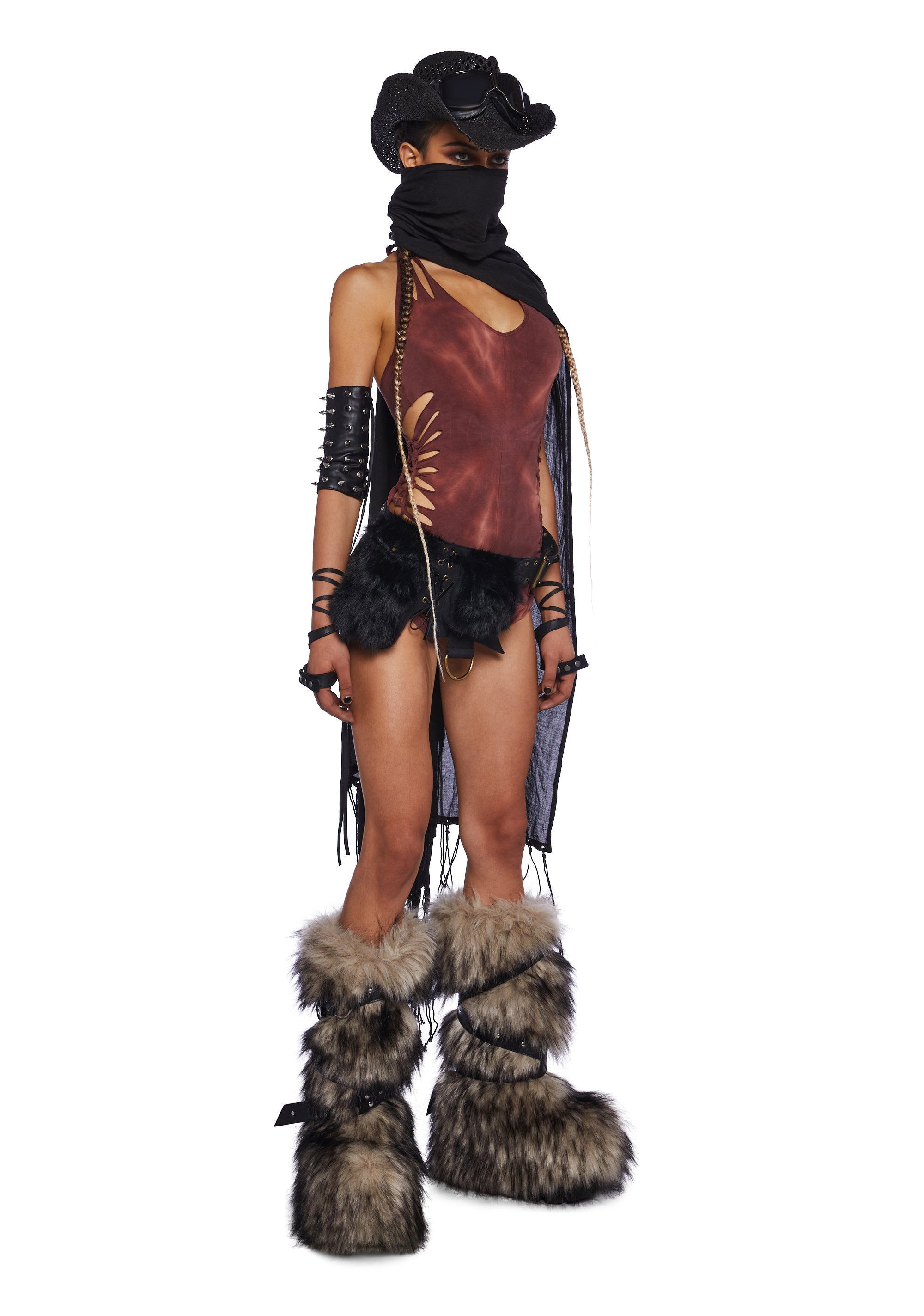 cuz will you ever see green? This romper has a tie dye pattern, a shredded design on the sides, and a halter neckline with adjustable back tie closures.