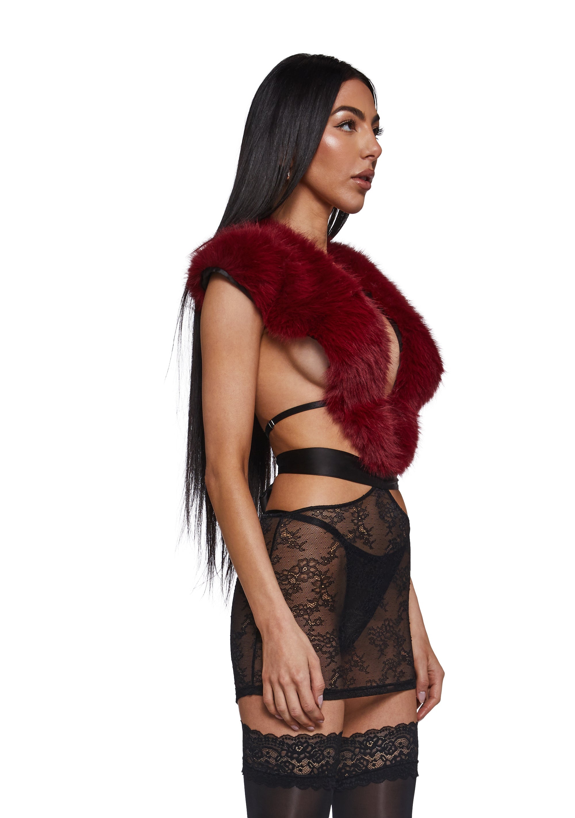 Turn up the drama after dark with this daring chemise set, combining plush faux fur with sheer lace for a bold, seductive finish. Designed to frame the body with statement textures and striking contrasts, this piece is made for unforgettable nights.
