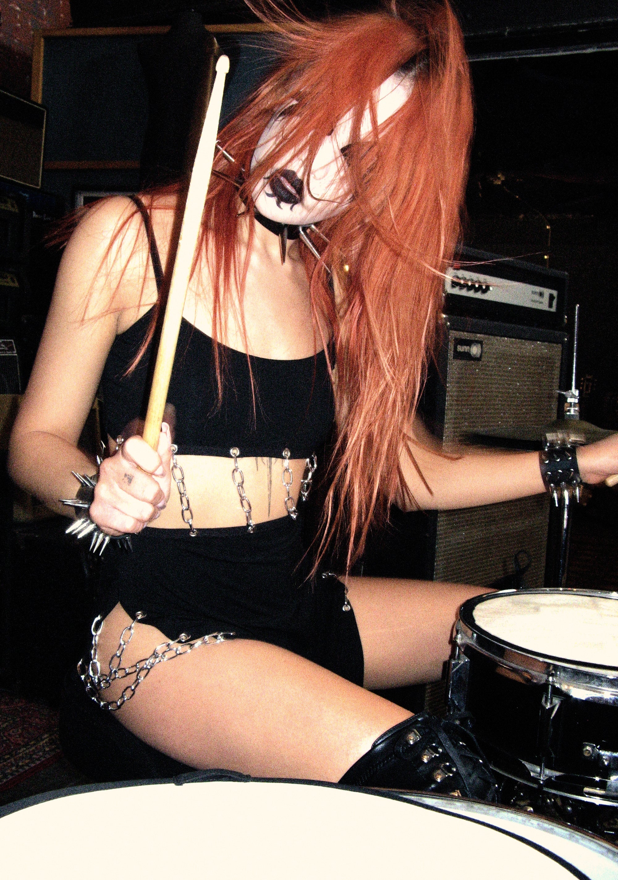 cuz you're ready to swing your head back and forth. This midi dress has a stretchy jersey construction, adjustable shoulder straps, cut out detailing with attached chain link hardware, high side slits, and a bodycon fit.