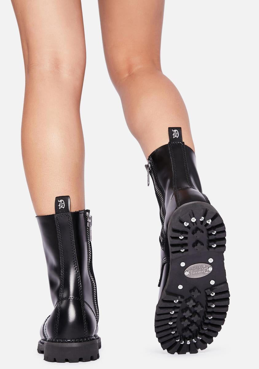 because you're ready to turn up the volume! These lace-up combat boots have a rounded steel-toe, rubber treaded sole and 10-eyelet leather construction.