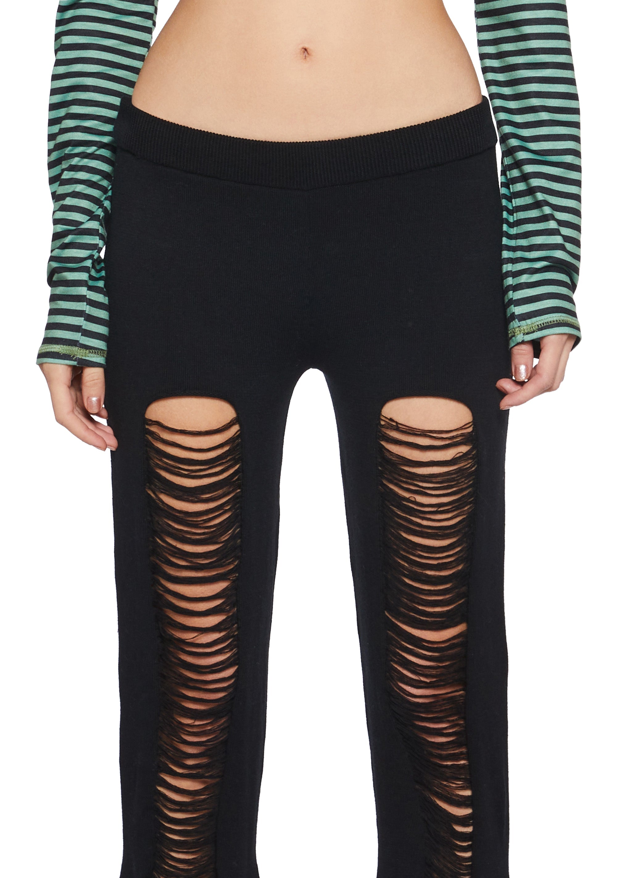 cuz you’re a nightwalker. These pants have a knit construction, a shredded leg, a pull on fit and a flared hem.
