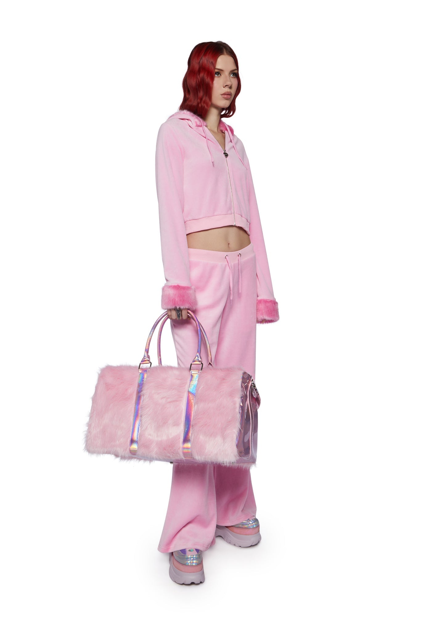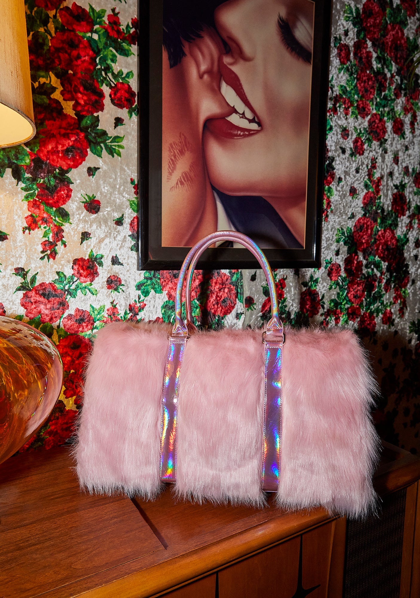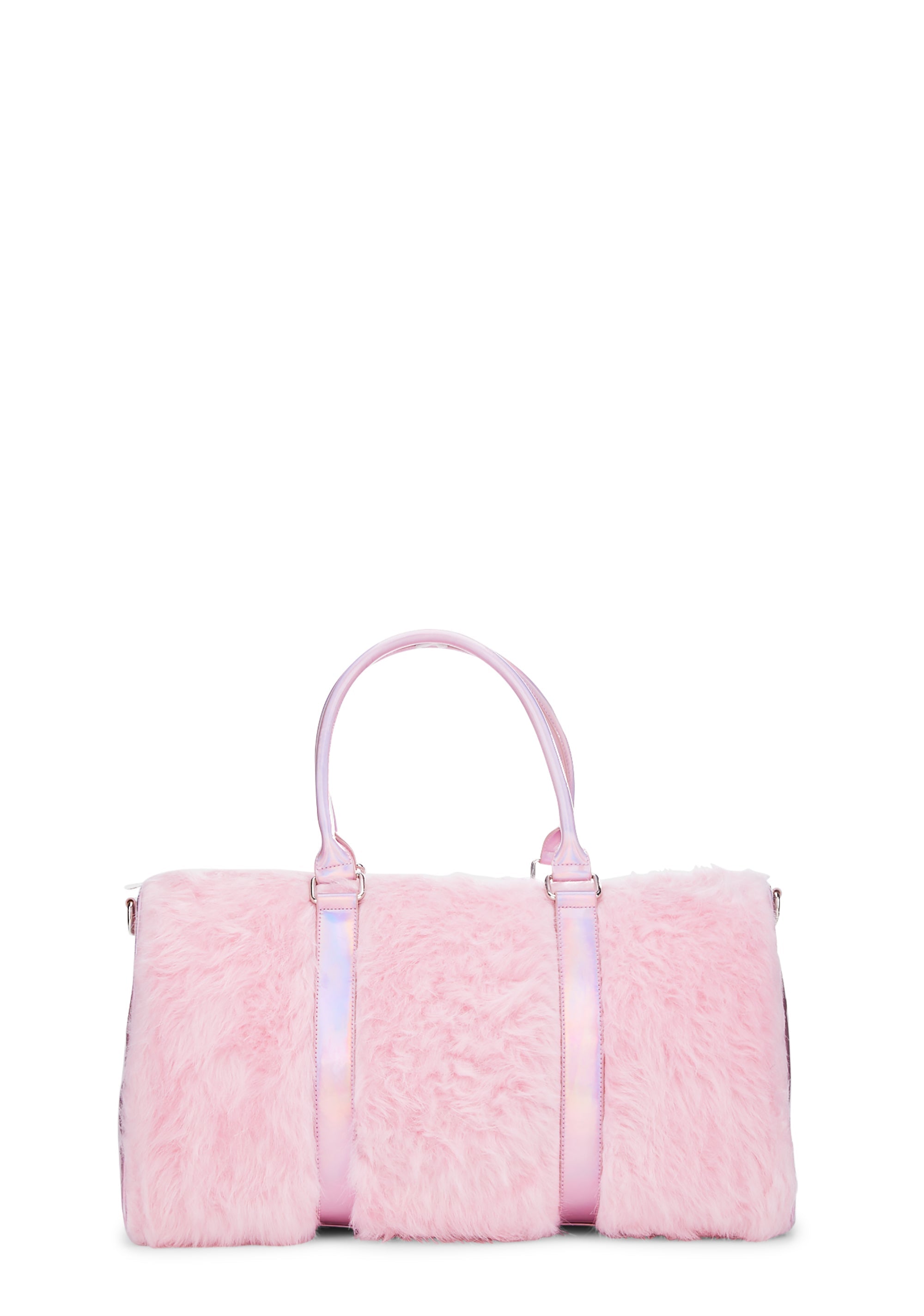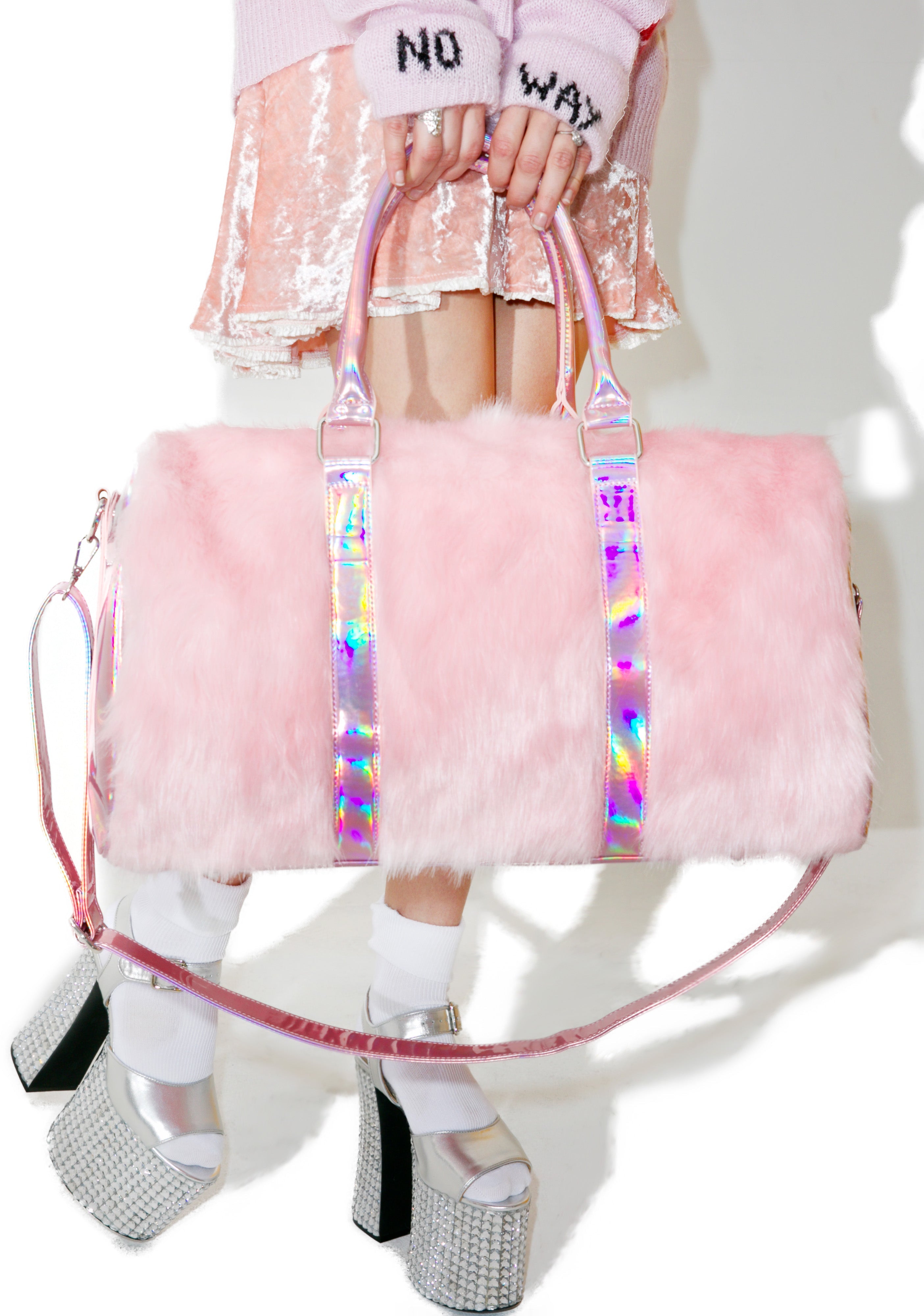 will take you on a magic trip! This pixie-approved weekender bag has super soft faux fur panels, contrast holographic trim, a detachable shoulder strap, and a roomy interior with a top zip closure.
